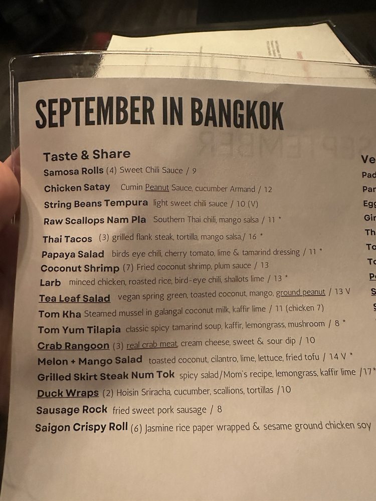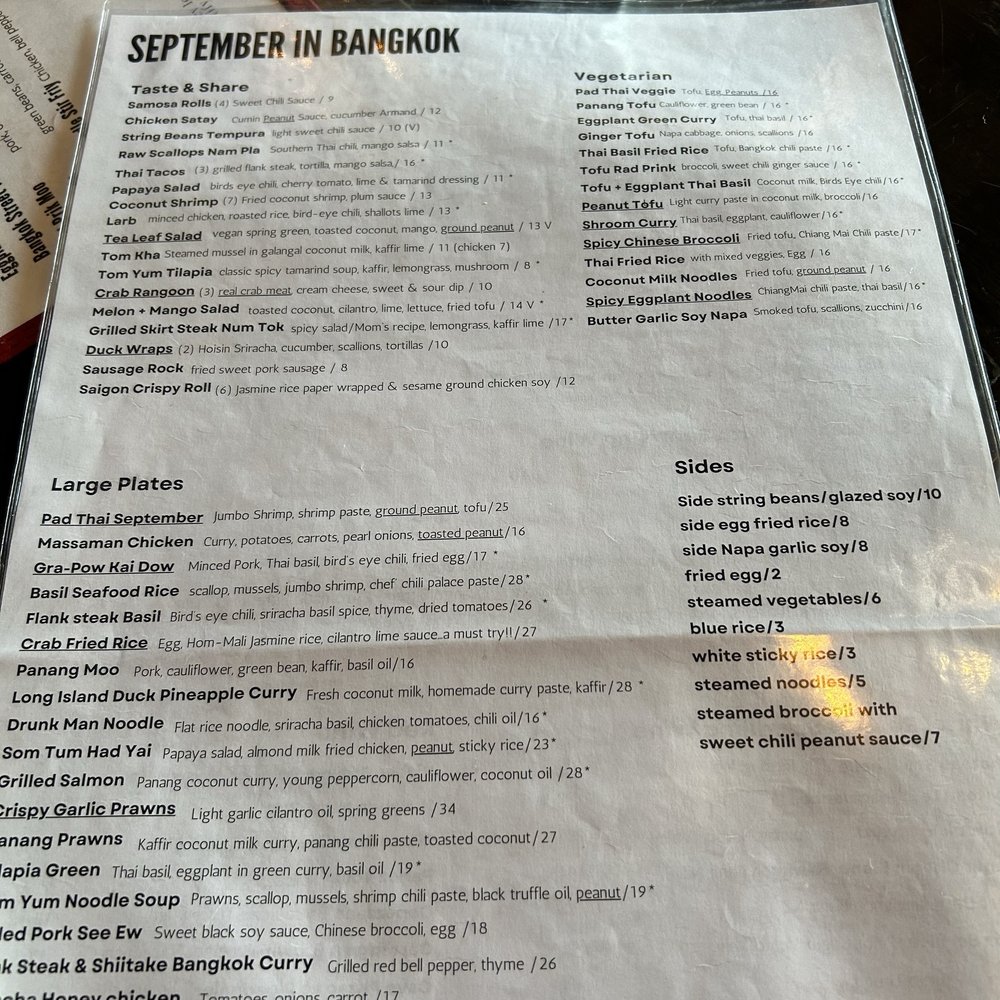 The harmonious blend of flavors is evident in dishes like the Drunk Man Noodle and the unique Mussels Pad Thai, showcasing the chef's dedication to fresh ingredients and bold tastes. Many reviews laud the expertly crafted meals, which are both beautifully presented and generous in portion size. With vibrant cocktails and outdoor seating, September In Bangkok fosters a vibrant atmosphere, making it an ideal spot for dates or group gatherings.